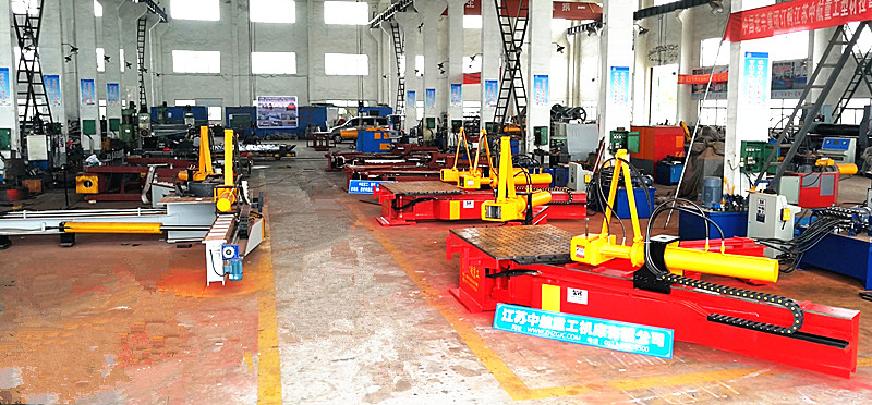 拉彎機結構革新特指一種拉彎機結構改良。包括有機架、轉臂,機架上側結合有一大盤,而機架前端兩側對稱樞接兩轉臂,轉臂上軌面安裝有附帶夾頭的活缸座,驅動轉臂的拉彎油缸的一端鉸接于機架靠前段,另一端由活塞桿之外端鉸接于轉臂的內側凸緣上,該凸緣位于轉臂的靠外段上,所述機架、轉臂及拉彎油缸之間為活動三角關系。拉彎油缸無須穿過轉臂內中部,由此轉臂也就無須在內中部鏤空,確保轉臂的一體性,加強了轉臂的強度和剛性
